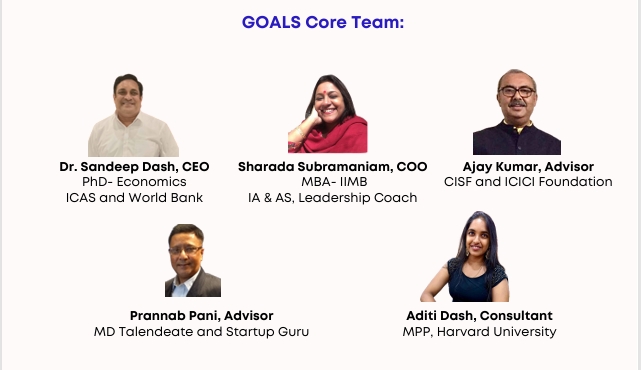 GOALS caters to every young person’s dream of a successful and fulfilling future. Our comprehensive curricula have been developed in sync with the National Education Policy 2020 (NEP) and cover a range of essential skills, including Coding, AI, Machine Learning, Public speaking and English Communication, Leadership, Yoga and Wellness, Entrepreneurship and Financial Literacy, General Studies and Logical Thinking. We focus on practical, creative and collaborative learning methods to help students and participants acquire future- proof skills.